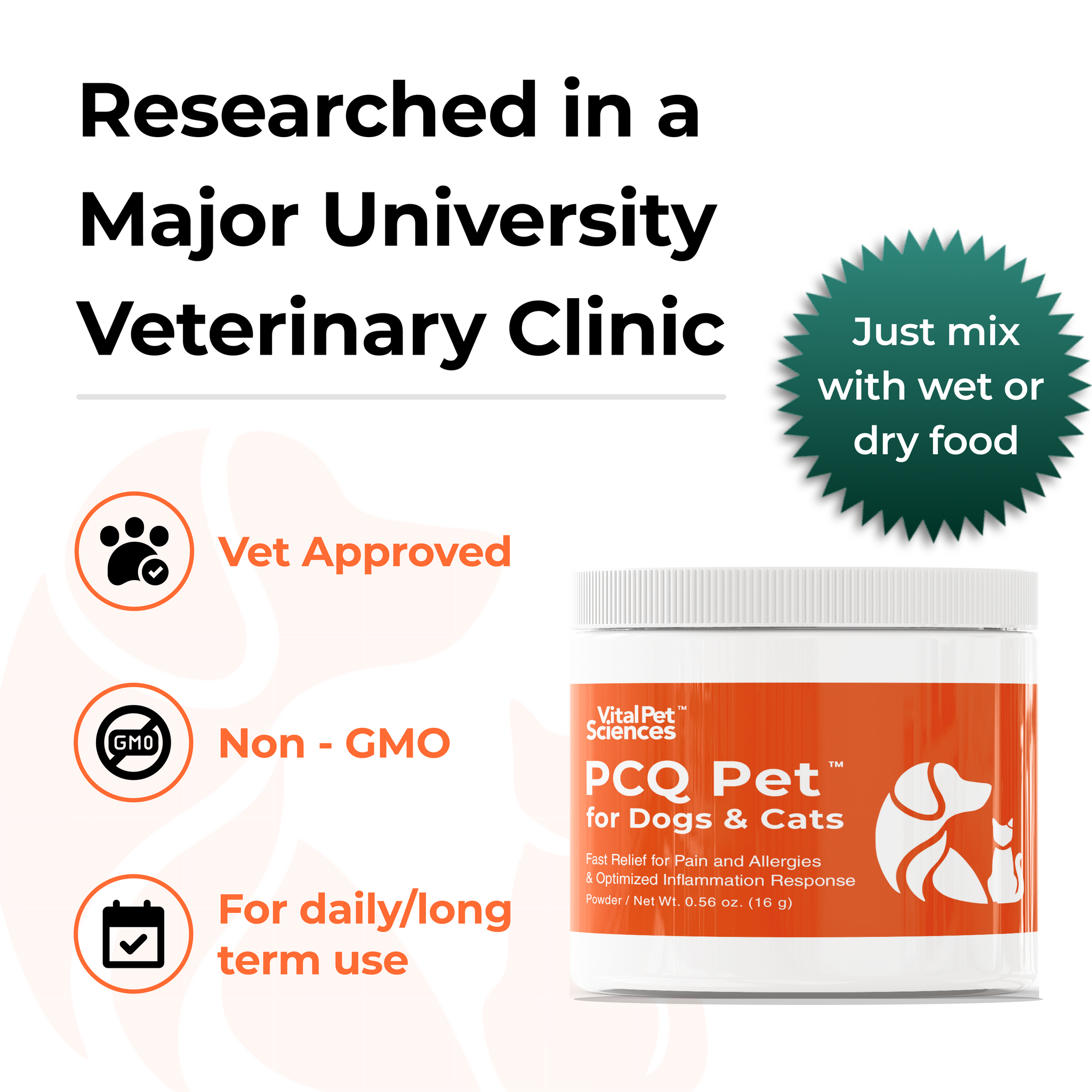 Hypo-allergenic and Safe - PCQ Pet is safe for long-term use, with none of the side effects often experienced with NSAIDs, steroids, or even other natural products.